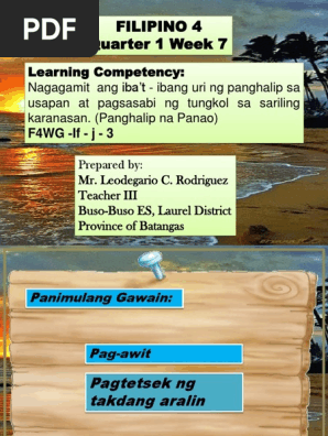 1392012 Ginagamit ang ang mga kapag marami ang tinutukoySa Para sa - ang sa ay ginagamit bilang isang panandang ganapan kung saan naganap ang kilos ng pandiwa. If a person is gay and he searches for the Lord and has good will Who am I to judge. Pamantayang Pagganap Naisasalaysay muli ang nabasang kuwento o teksto nang may tamang pagkakasunod-sunod at nakagagawa ng poster tungkol sa binasang teksto C.